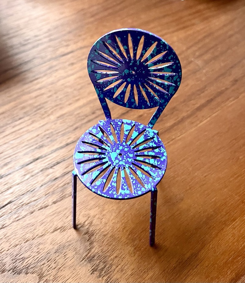 The Wisconsin Union team will place about 860 of the purple and teal mini chairs, measuring about 4 inches tall, on the shelves of the Badger Market at Memorial Union for sale on May 1, where they will remain on sale while supplies last. If some of the mini chairs remain on May 15, the team will also make them available in its online Terrace Store. The Union does not anticipate creating more of the purple and teal chairs.