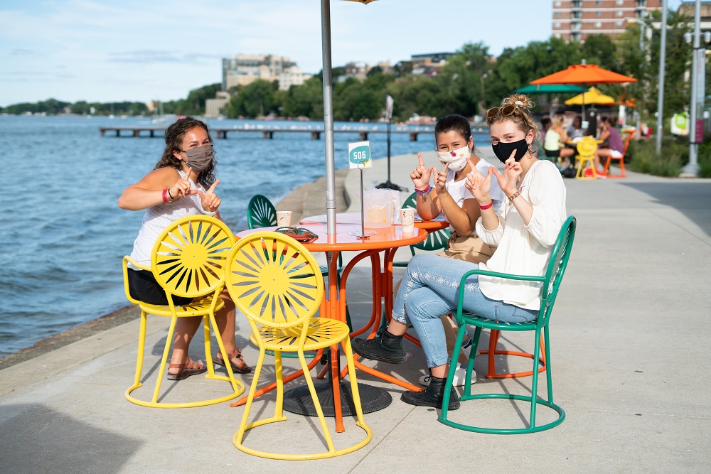 Terrace patrons can enjoy the outdoor space’s seating on a first come, first served basis. The Union team requests that guests not move tables and chairs from their designated locations. The team designed seating to aid in physical distancing. Guests must wear masks and practice physical distancing while at Memorial Union, including the Terrace. UW-Madison students, staff and faculty with Badges that show building access granted status can also still use seating inside Memorial Union.