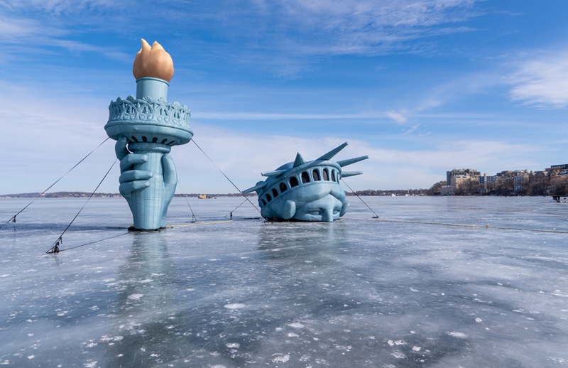 Winter Carnival also marks the return of one of the Wisconsin Union’s most photographed and beloved traditions: Lady Liberty on Lake Mendota.