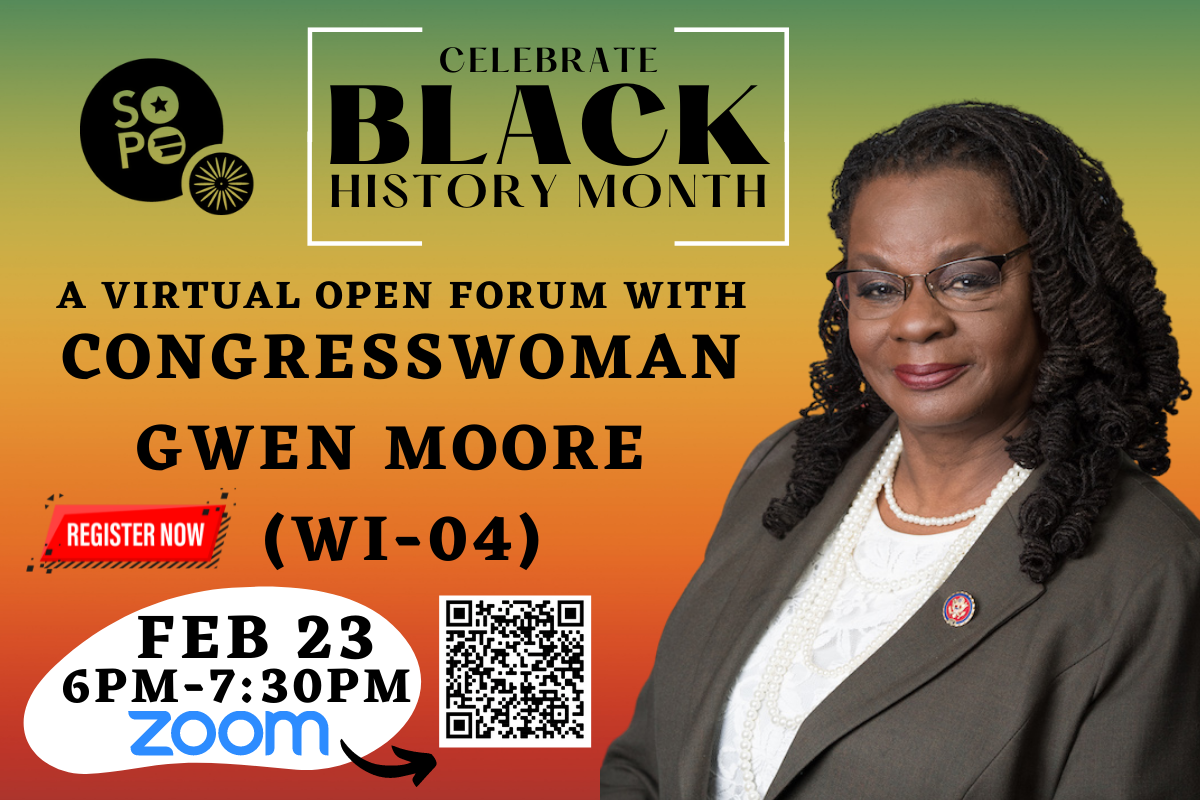 Note: Only UW Madison students or faculty with @wisc.edu email addresses will be able to access the forum via Zoom. This ensures that interactions with Congresswoman Moore are limited to UW Madison students. All other viewers will be able to watch the event live via the WUD SoPo Youtube Channel [https://www.youtube.com/channel/UCTxibtyAJw-tE1gZY-Int2A], and are encouraged to (virtually) attend.