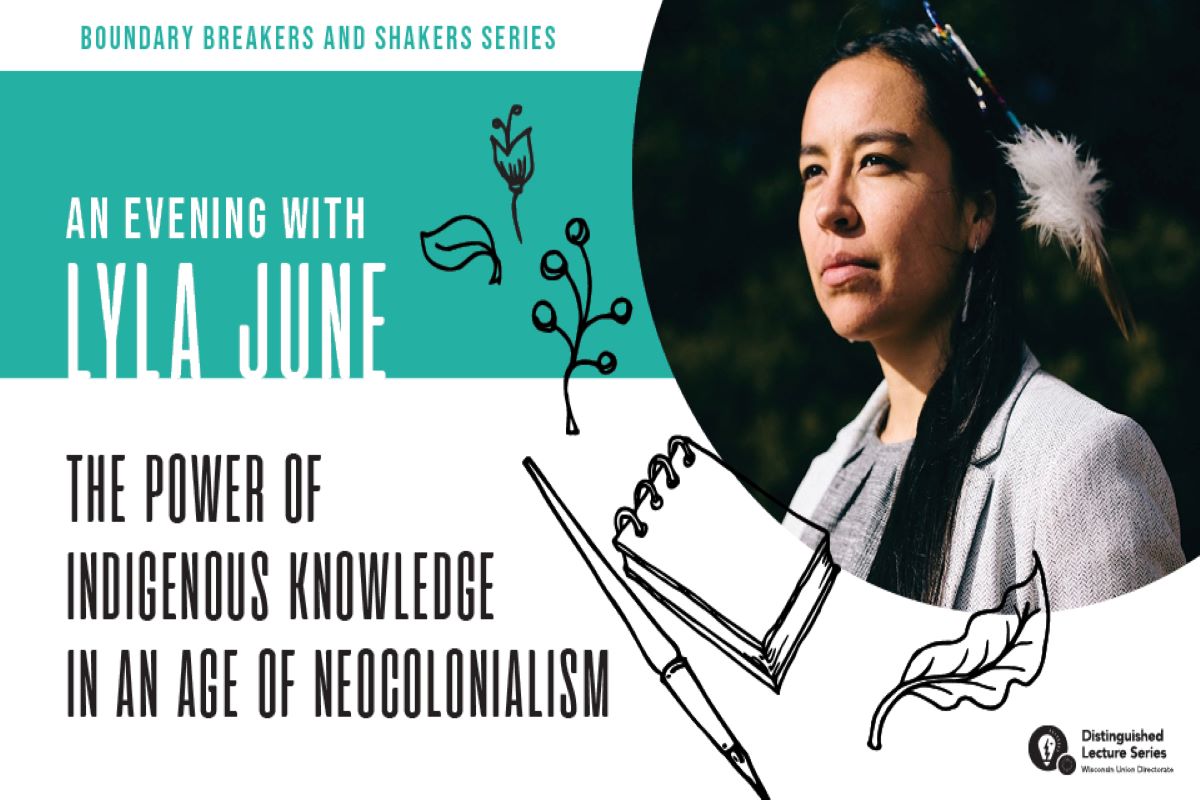 Join the Wisconsin Union Directorate Distinguished Lecture Series committee alongside Lyla June, an internationally recognized poet, human ecologist, musician and community organizer.