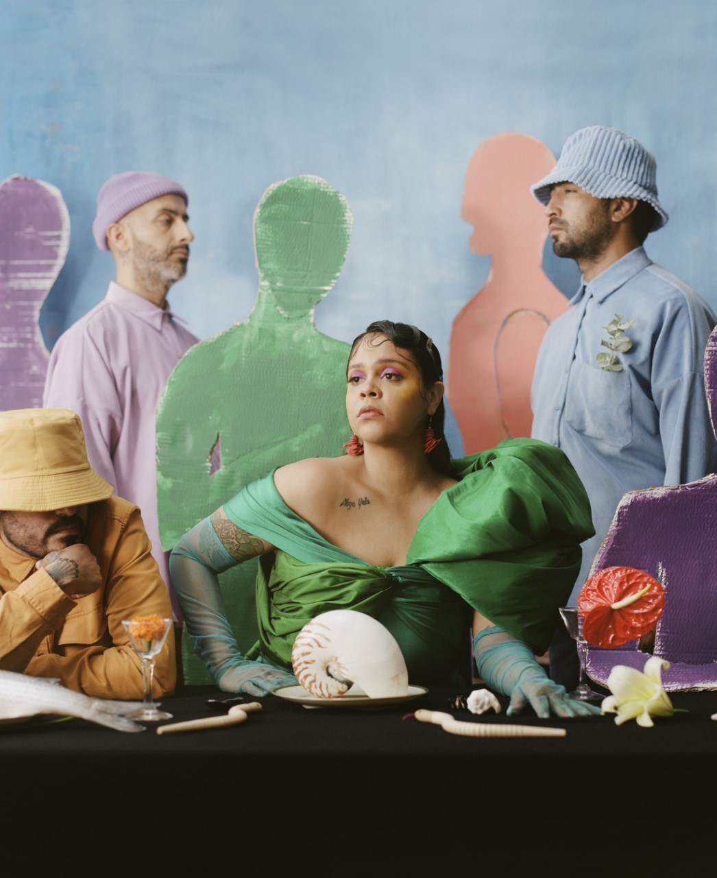 Described by NPR’s Alt.Latino as an "otherworldly presence,” Combo Chimbita is the creative unity of Carolina Oliveros (vocals, guacharaca), Niño Lento es Fuego (guitar), Prince of Queens (bass, synthesizers) and Dilemastronauta (drums), who together transcend common concepts of time and nationality. As self-described Abya-yalistas seeking meaning beyond a Latin American framework, they carry the burning torch of an unbroken, insubmissive people, unshackling their essence from the cruelty of conquest throughout Abya Yala. “Music is a tool of connection across time, territory and generations,” says Prince of Queens, echoing the visual metamorphosis for single “Memoria'' and Combo Chimbita's own decolonial shedding of skin.