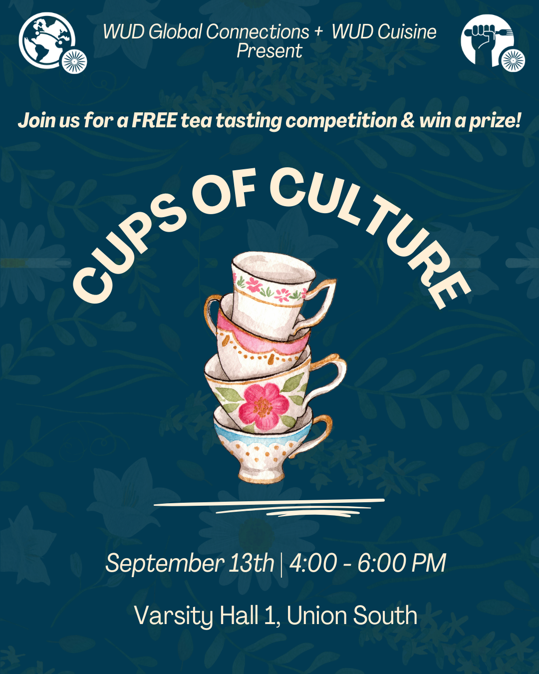 Join this free collaboration between WUD Global Connections and WUD Cuisine, and taste teas from around the world. Work with others to guess the flavor and win a prize.