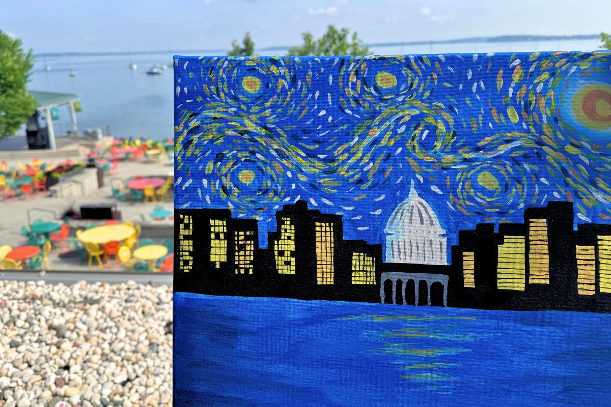 Come and join us for a wonderful evening on the Terrace for two! Bring your significant other, mother, brother, or best friend and enjoy the ambiance of the Terrace while you work on a rendition of "Starry Night," featuring some familiar views of the city. Take in the view of Lake Mendota from the balcony of our iconic Tripp Deck in your reserved space. The space will be available starting at 5 PM so you can bring up food and drink to your reserved seating areas!
