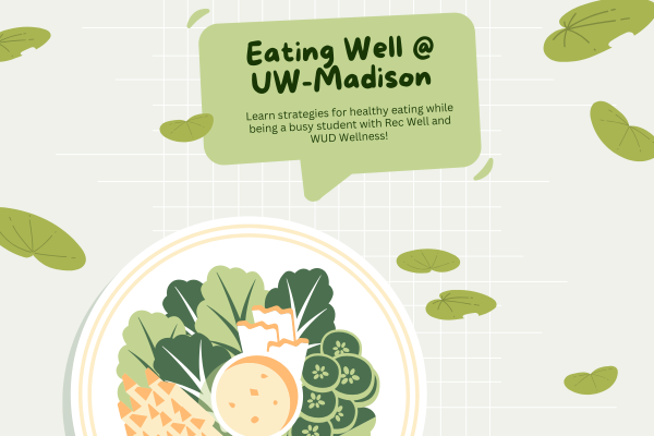 On Wednesday, March 11th, WUD Wellness is hosting a Rec Well workshop, Eating Well at UW-Madison. Come learn more strategies for healthy eating while being a busy student. This event will take place at 6:30 pm in The Well at Union South, room 233. A refreshment will be provided.