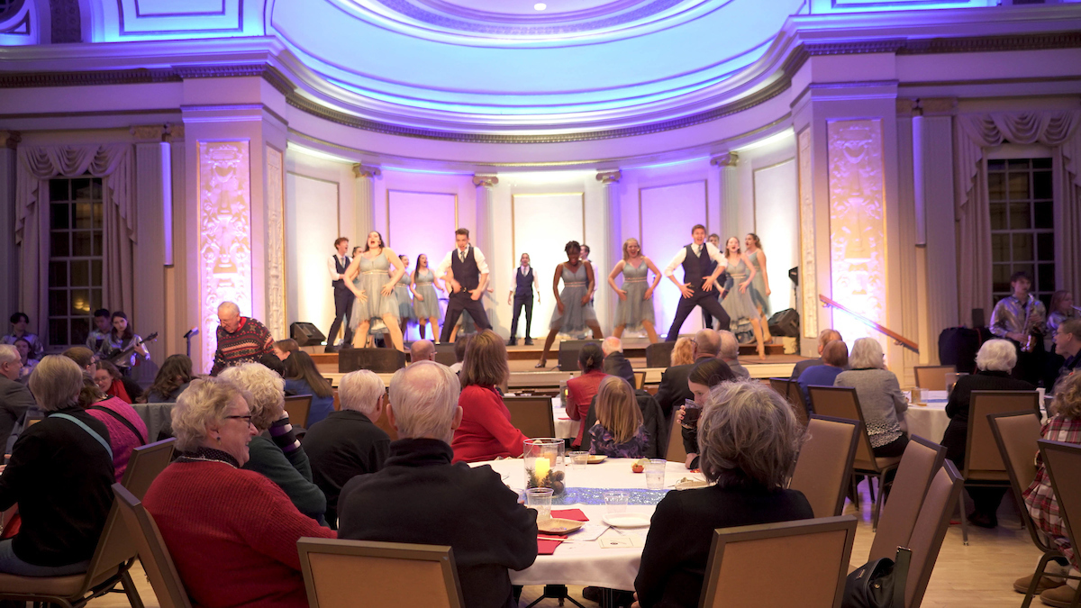5 PM: Arrive to Main Lounge with live music5:45 PM: Transition up to dinner in Great Hall6–7 PM: Dinner and start of Wisconsin Singer Performance7–7:40 PM: Dessert served and Wisconsin Singers Finale7:40–8 PM: Sing-a-long