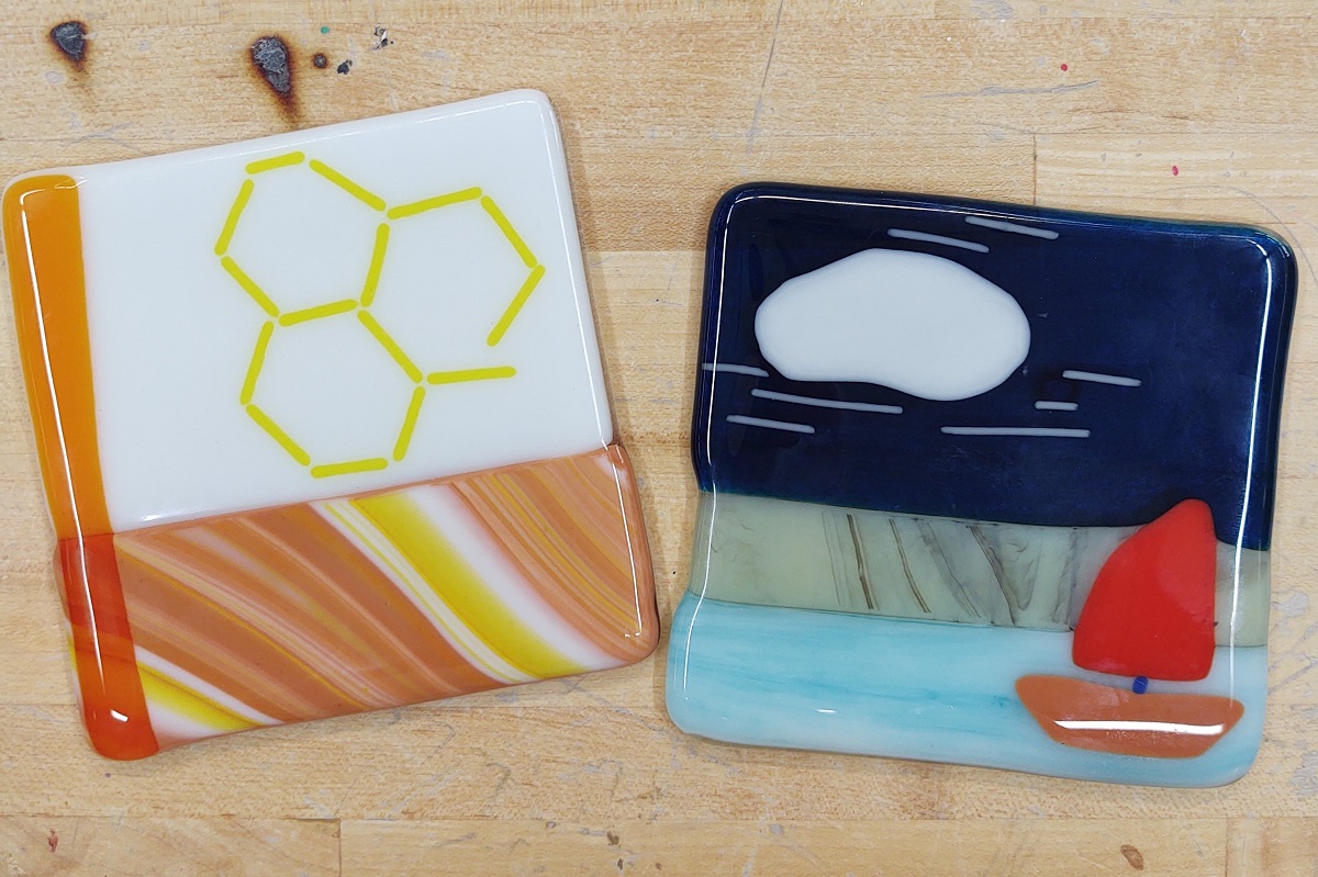 Design and create a set of 4 fused glass drink coasters! In this class, you will learn the basics of cutting, assembling, and firing glass to create a unique and practical set of coasters. All supplies for this course are provided and all skill levels are welcome.