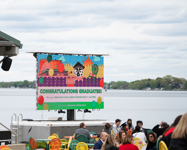 Come down to the Terrace and watch the noon Camp Randall Stadium Bachelor’s, Master’s, and Law Degree Candidate graduation ceremony live. Enjoy the ceremony, the lakeview and our many dining options. First come, first serve!