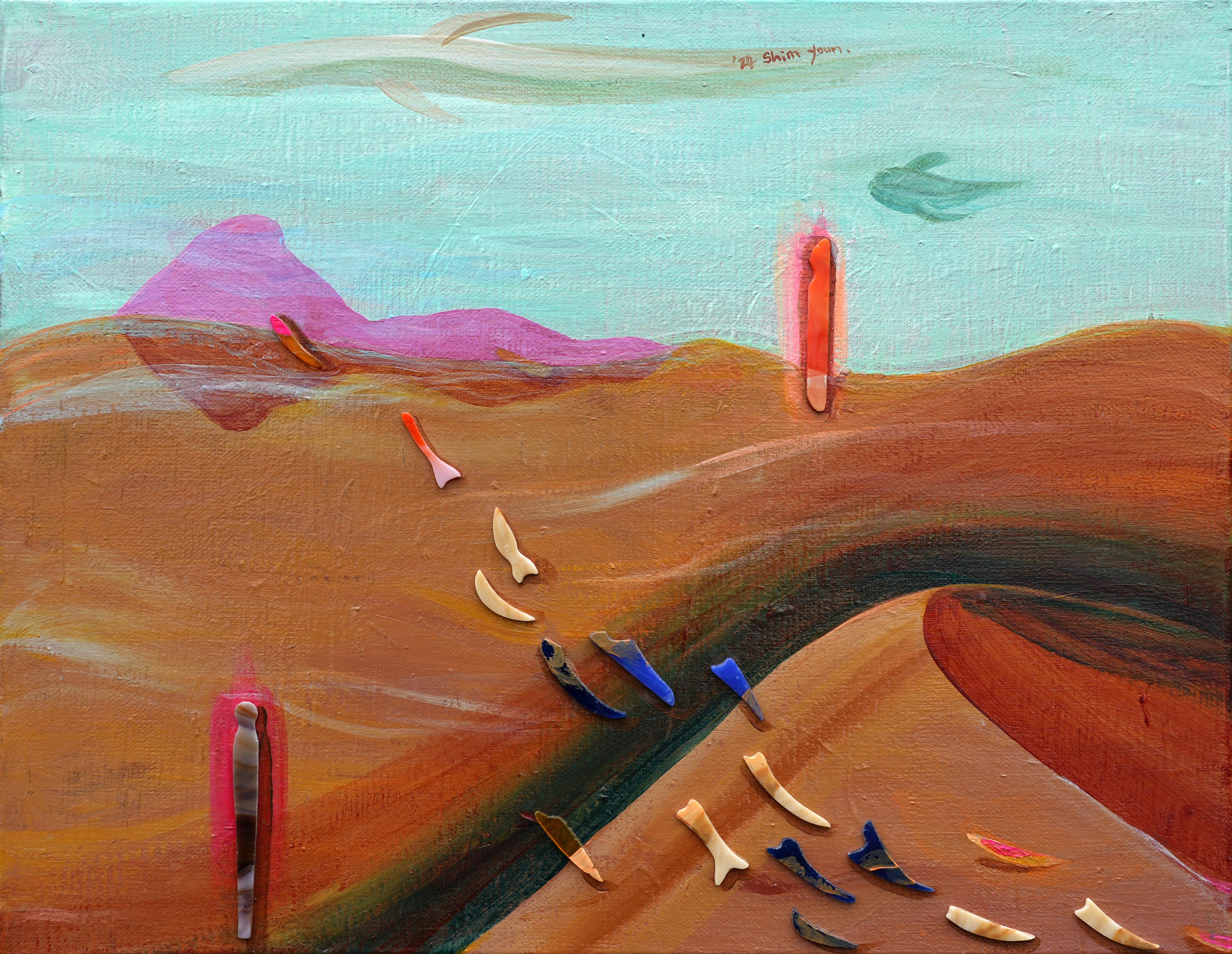 From the artist: Baram could mean wind or whishing. The dancing Baram takes me to a deep valley beyond the mountain, through the windows of my workroom. Angelic imaginations of a youth and with a lively anticipation of a girl, now I paint those reminiscences in this mature time.