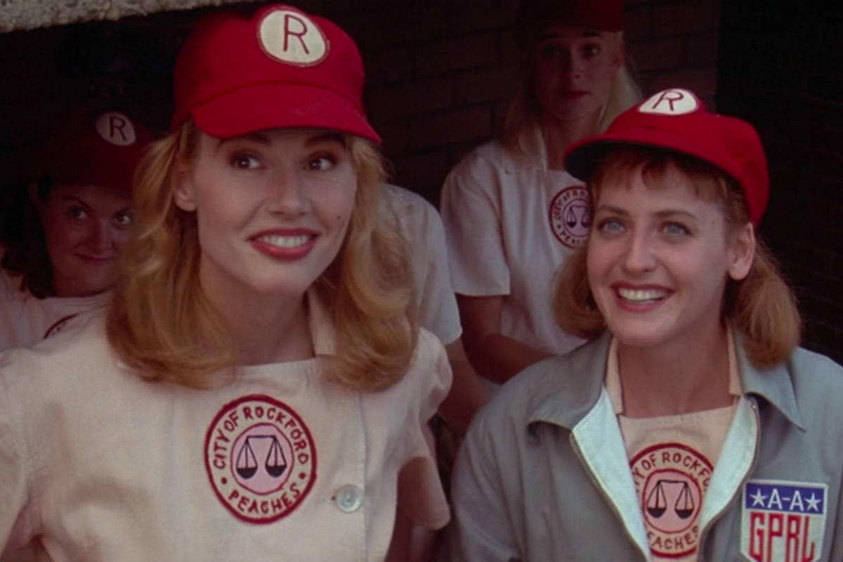 As America's stock of athletic young men is depleted during World War II, a professional all-female baseball league springs up in the Midwest, funded by publicity-hungry candy maker Walter Harvey (Garry Marshall). Competitive sisters Dottie Hinson (Geena Davis) and Kit Keller (Lori Petty) spar with each other, scout Ernie Capadino (Jon Lovitz) and grumpy has-been coach Jimmy Dugan (Tom Hanks) on their way to fame. Madonna and Rosie O'Donnell co-star as two of the sisters' teammates. [Rotten Tomatoes]