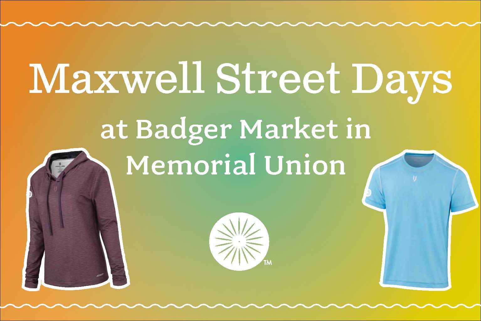 Save on Terrace and Badger apparel and gifts during Maxwell Street Days 2024! Find great deals inside Memorial Union at Badger Market.Thur. 7/18: 7 am-11 pmFri. 7/19: 7 am-11 pmSat. 7/20: 8 am-11 pmSun. 7/21: 8 am-11 pmAll sales final.