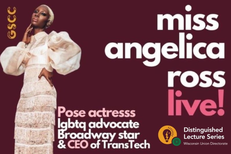 Join us for this Inaugural Trailblazer Talk! featuring the iconic star of stage and screen Angelica Ross: acclaimed actress, advocate, and entrepreneur! Miss Ross LIVE is the Gender and Sexuality Campus Center's (GSCC) inaugural Trailblazer Talk, and is in partnership with the Wisconsin Union Directorate Distinguished Lecture Series, along with the UW-Madison Black Cultural Center, UW Gender and Women's Studies, the UW-Madison Division of the Arts, Women in Science and Engineering (WISE), the Center for Cultural Engagement UW-Madison, the Multicultural Student Center at UW-Madison, the Wisconsin LGBT Chamber of Commerce Foundation, Open House Learning Community UW-Madison, Multicultural Learning Community UW-Madison, Qouncil, the Office of Inclusion Education UW-Madison, and The Studio Learning Community at UW-Madison.