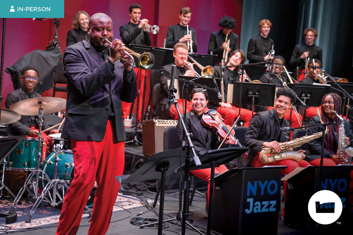NYO Jazz is led by Sean Jones, renowned trumpeter, bandleader, and composer. The ensemble is joined by guest vocalist Jazzmeia Horn, an award-winning jazz singer and songwriter.
