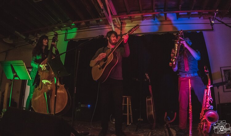 The music ranges from 12-string renditions of classic tunes like Purple Haze and Heart of Gold to melodious folk-jazz originals. Frank is frequently joined by saxophonist Daniel Haschke and upright bassist/vocalist Claire Kannapell, who complete the Old Oaks Trio