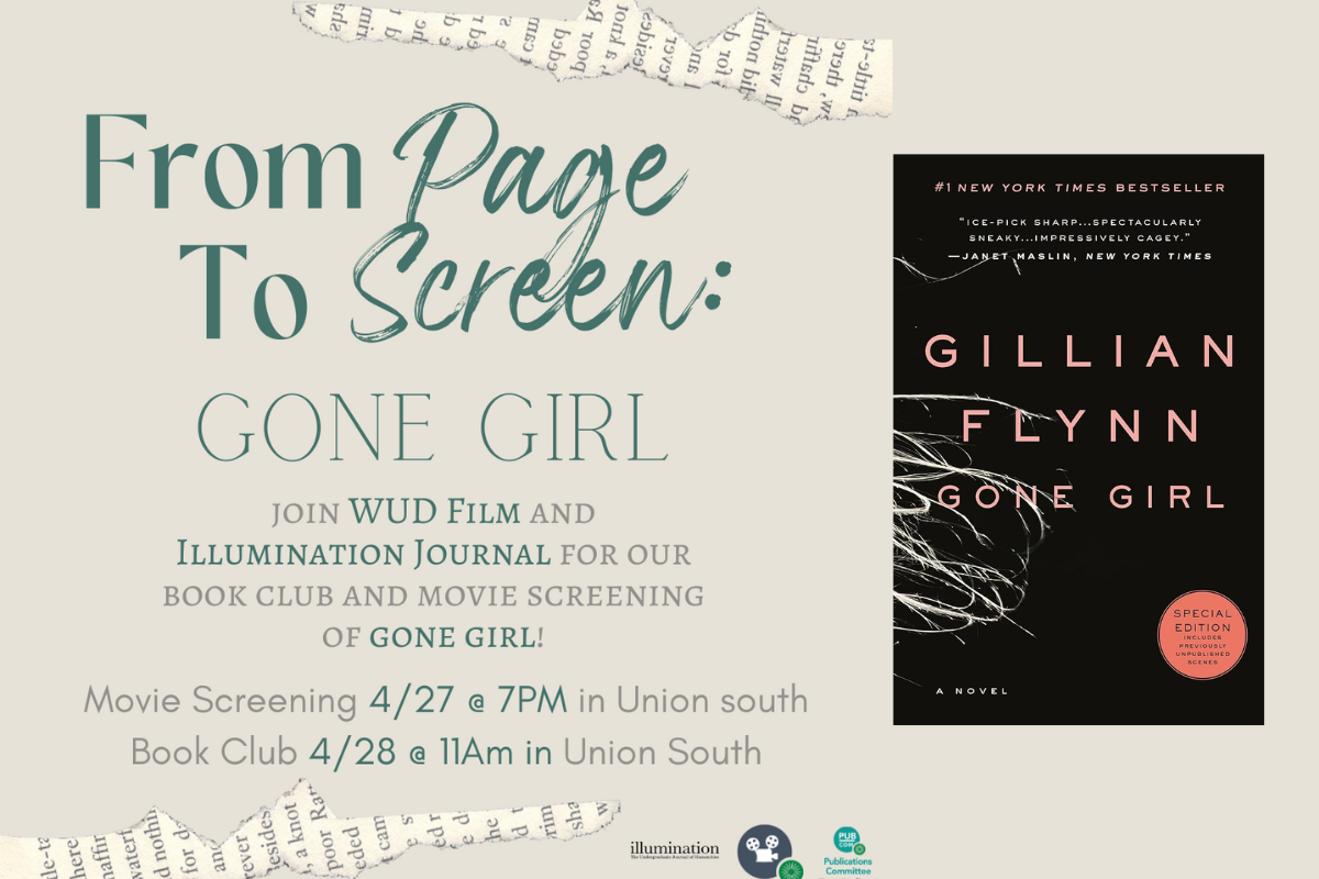 Join Illumination Journal to discuss Gillian Flynn's bestselling novel, Gone Girl, and its big screen adaptation. The film will be playing in the Marquee prior to this event on Wednesday, April 24th at 7:00 pm. (You do not need to attend the screening to attend the book club)
