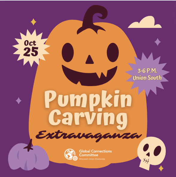 The best pumpkins are those that are free to carve. Hang out with your friends, forget about exams for a little bit, and enjoy warm fall beverages while you carve a pumpkin to take home. All tools, pumpkins, and refreshments will be provided! Come early as supplies are limited. It will take place outside of Union South (Orchard St.) on Wednesday, October 25th from 3-6 pm.