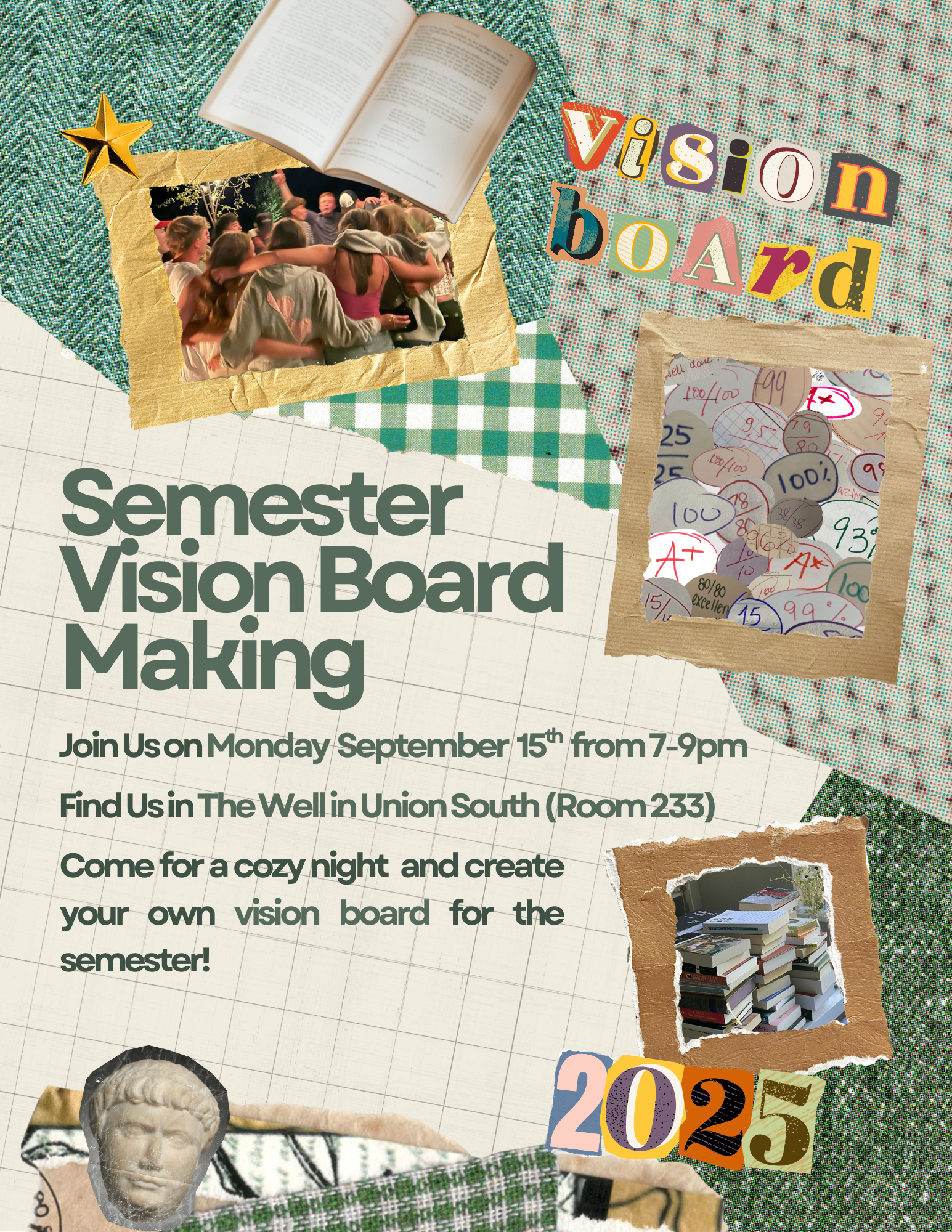 Join WUD Wellness in Union South to create a unique vision board for your semester!