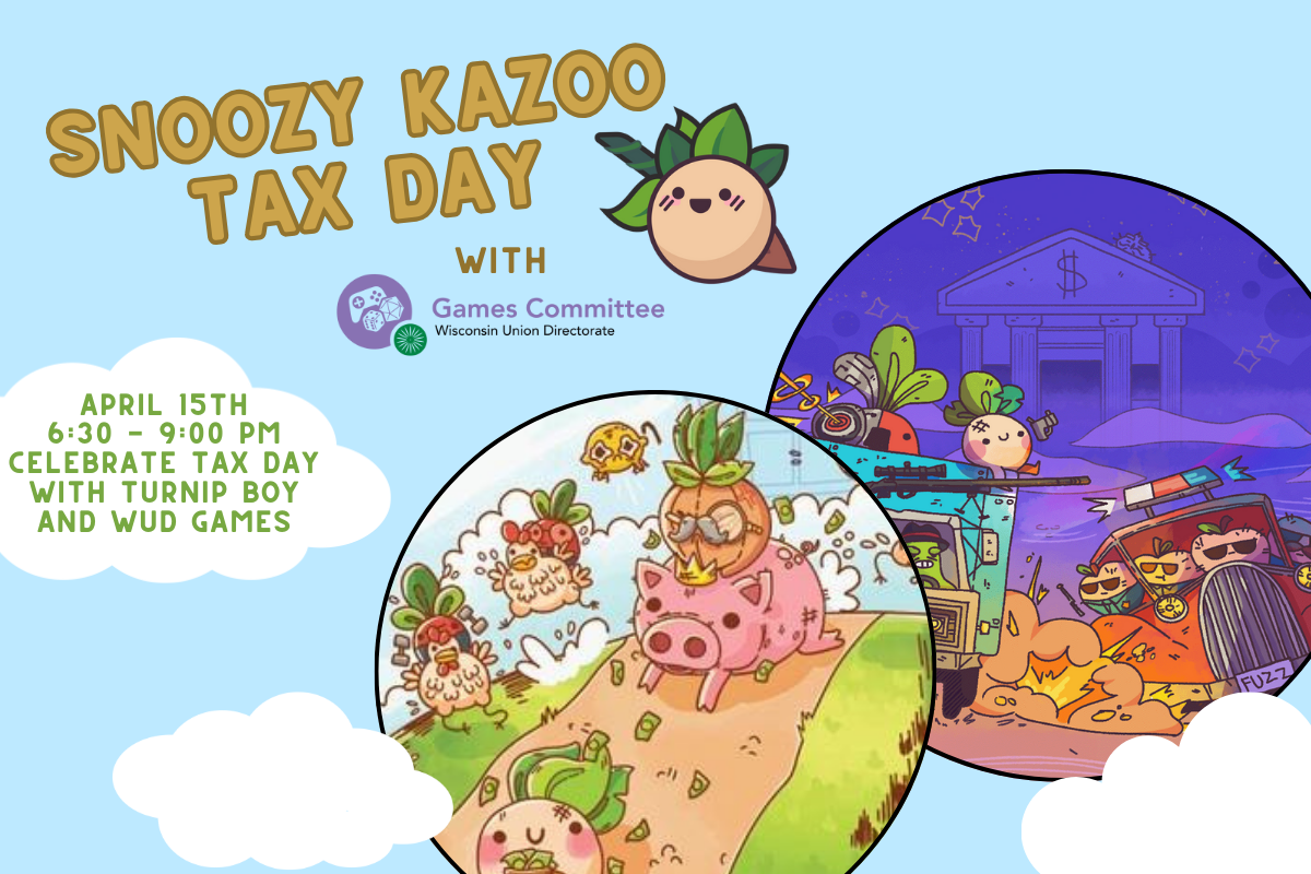 Celebrate doing taxes by playing as Snoozy Kazoo's famous Turnip Boy and go on hilarious adventures involving taxes. We'll be featuring two games made by Snoozy Kazoo on multiple TVs along with free food!