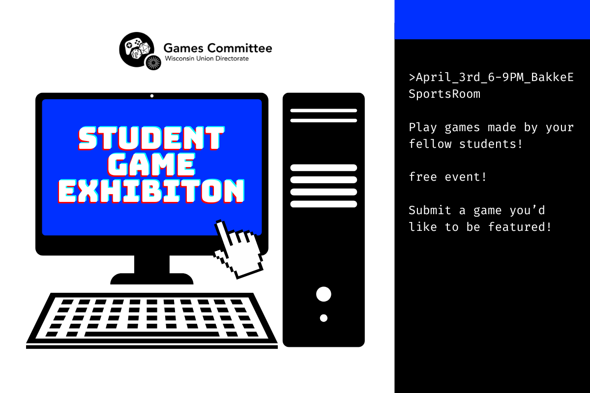 If you have a game you would like to be featured at this event, reach out to our email at games@union.wisc.edu and we'll feature your game.