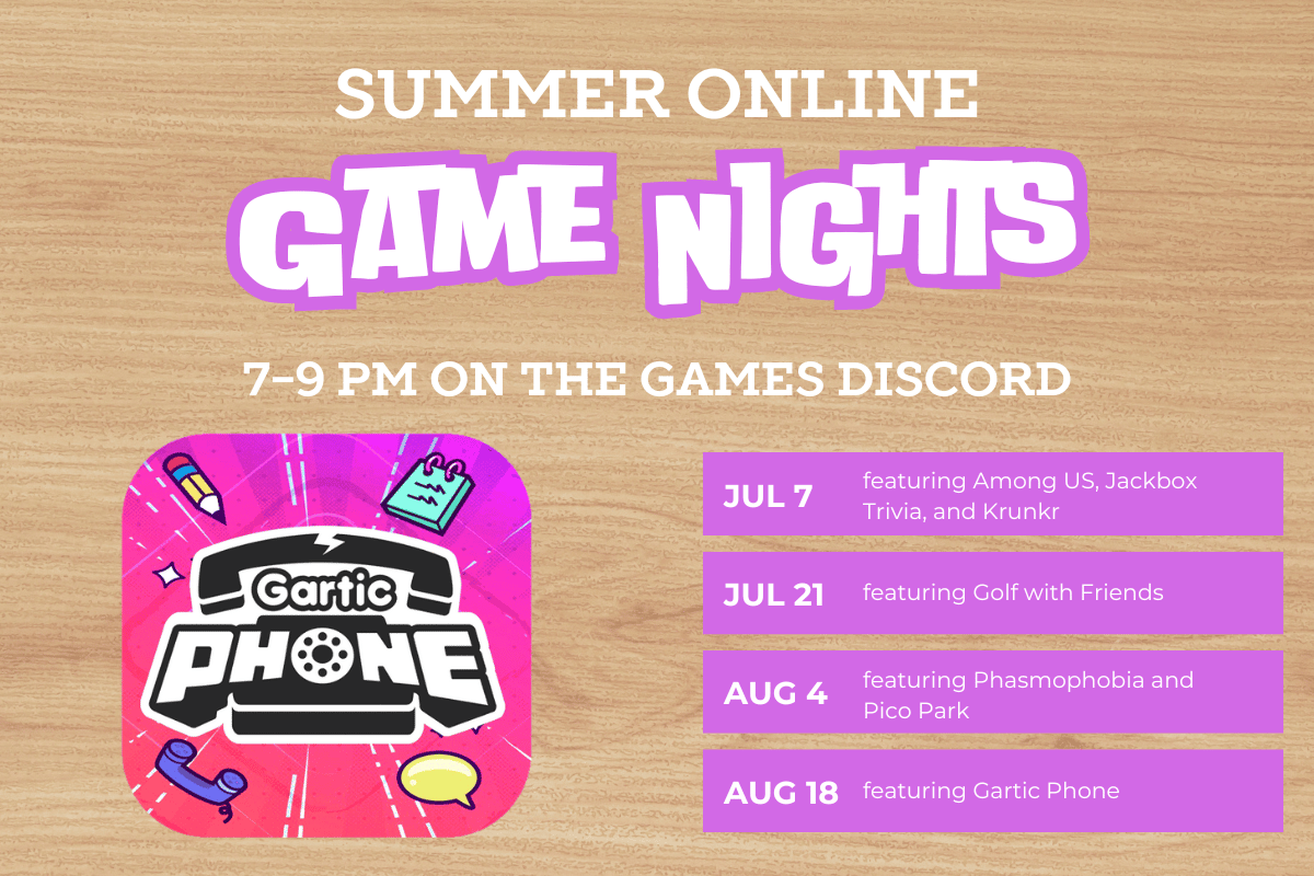 Hop on our Discord for a virtual summer game night featuring Gartic Phone! If you don't own the featured games, you can rent a steam account here!Not a member of the official WUD Games Discord? Click here to join today!