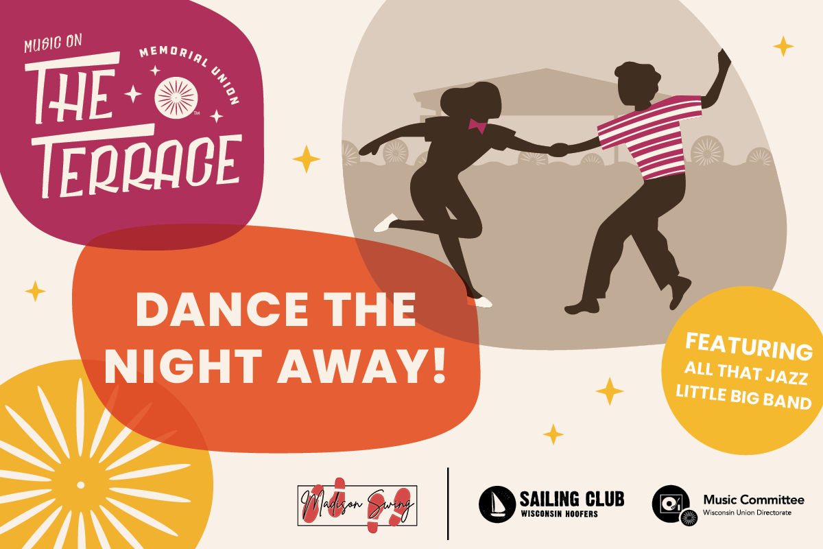 Enjoy a free night of swing dancing accompanied by a live band, All That Jazz Little Big Band, on the Terrace presented by Hoofer Sailing Club and WUD Music Committee. The Madison Swing Social Dance Club will provide instruction through large group demonstrations and individual coaching throughout the evening.