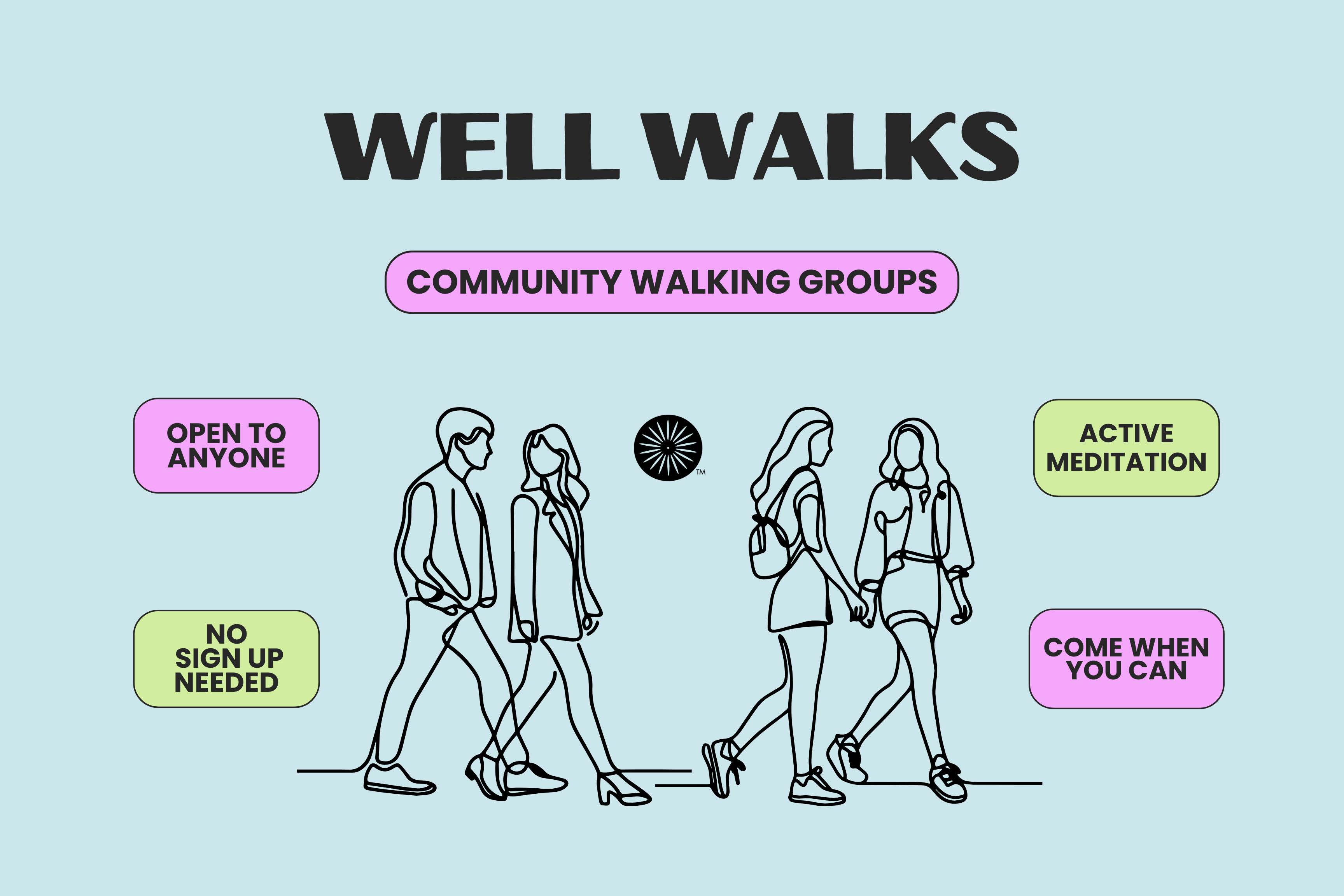 All Well Walks are ~1 hour long and we always meet up in The Well! No sign up needed - come when you can! Start a new routine and become a Well Walk regular, or drop in when it's convenient!