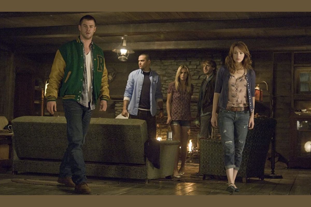 "When five college friends (Kristen Connolly, Chris Hemsworth, Anna Hutchison, Fran Kranz, Jesse Williams) arrive at a remote forest cabin for a little vacation, little do they expect the horrors that await them. One by one, the youths fall victim to backwoods zombies, but there is another factor at play. Two scientists (Richard Jenkins, Bradley Whitford) are manipulating the ghoulish goings-on, but even as the body count rises, there is yet more at work than meets the eye." - (Rotten Tomatoes)