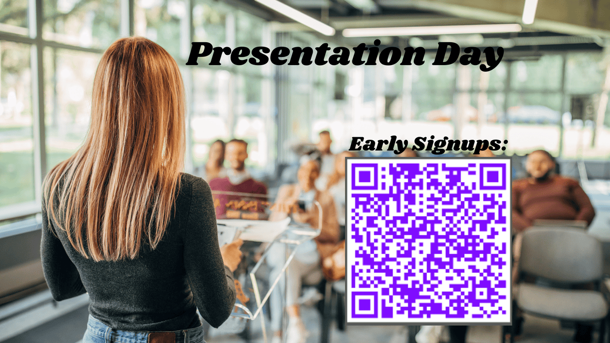 There will be time to make quick presentations, but if you want to make one in advance, here is an early sign-up to submit a presentation. Here is the submission link.