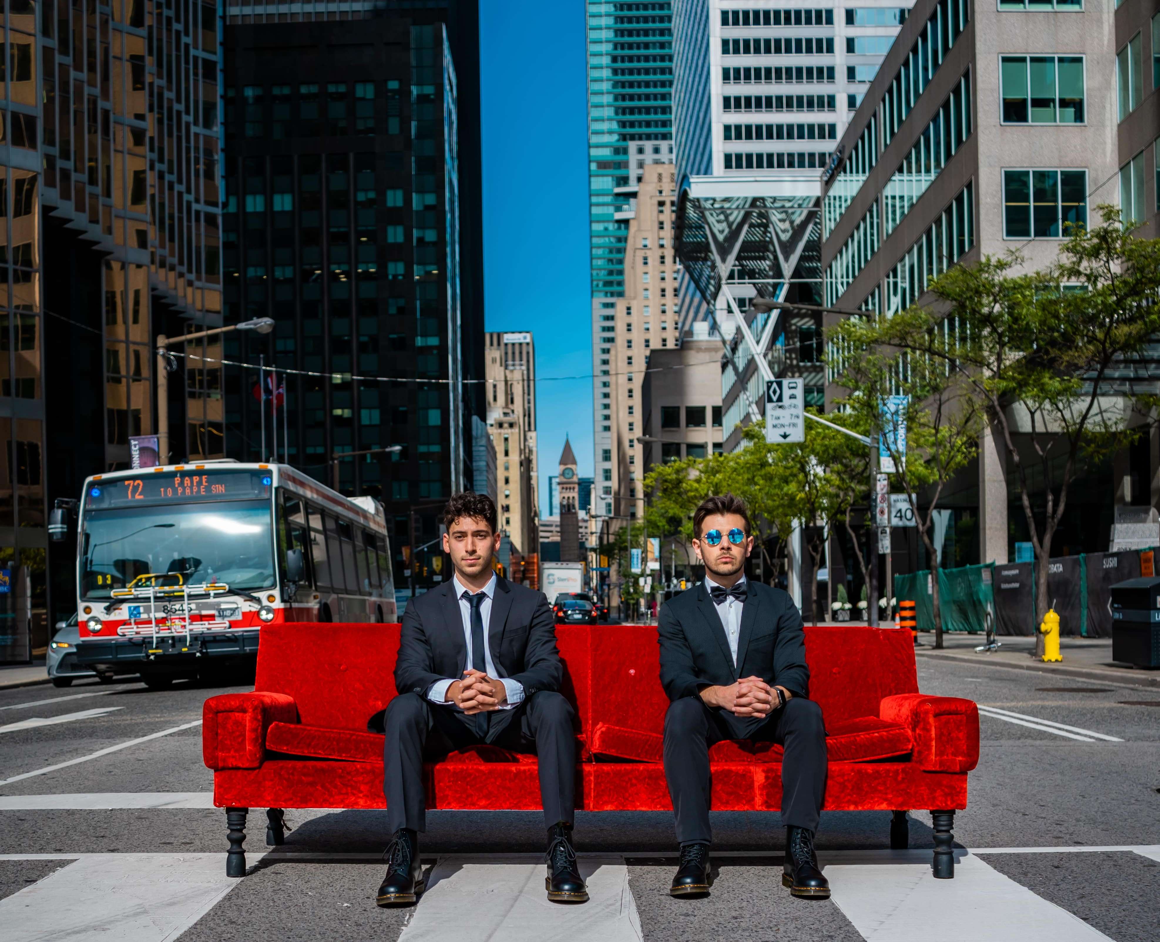 Crash Adams’ pop songs carry the same kind of mood-boosting power as a hit of pure dopamine. After years of developing their magnetic personalities on social media, the Toronto-bred duo brought their energy to the world with the video for their nostalgic breakthrough single “Give Me a Kiss.” The duo has organically built an online fan base and found their niche with videos highlighting their positive attitude, vibrant suits and iconic red couch from Crash’s grandmother’s house. From the memorable, melodic March 2020 single “Caroline” to the October 2022 romantic bop “Destination,” Crash Adams has generated 1.2 billion views and 43 million audio streams across platforms. For the duo, the success has been a sign that they’re on the right track—that everything they dreamed of is within reach. Not that they ever had any doubts.