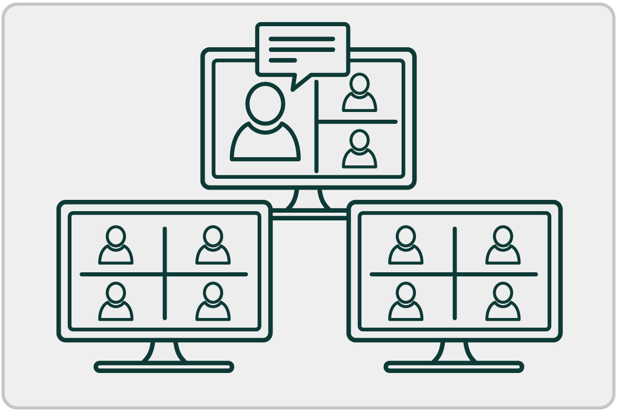 Drawing of a virtual meeting displayed across multiple computers